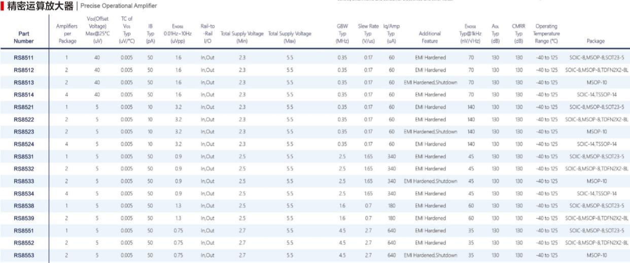 江苏润石科技有限公司是一家专注于高性能、高品质模拟/混合信号集成电路研发和销售的高科技半导体企业。主要产品包括精密运算放大器、高速运算放大器、通用运算放大器、低噪声运算放大器、微功耗运算放大器、微功耗比较器、模拟开关、电源管理、数据转换器等,广泛用于工业控制、医疗设备、安防监控设备、仪器仪表、汽车电子、智能家居以及消费类电子等领域。